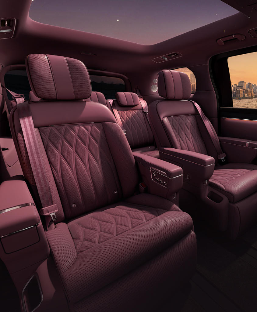 据介绍,3款颜色的灵感来源于破晓微光、正午阳光和傍晚暮色的一日三时光影。部分配置也同步曝光,采用一体式的横向贯穿屏幕,搭配中控台下方的水晶旋钮以及NAPPA头层真皮等;搭载二排旋转座椅,支持大床模式、灵活行李舱等多种模式切换,兼顾全场景出行需求。