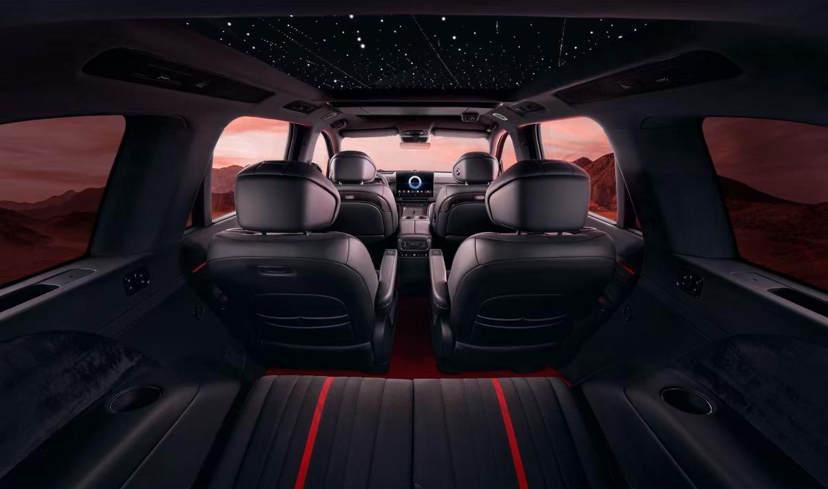 内饰部分,泰山黑武士版以大面积的“丹墨”为底,在座椅缝线、头枕等关键之处保留“丹砂”点红。墨晶璀璨按键选用高品质黑水晶材质,采用钻石切割工艺打造,深邃大气兼具沉稳质感;流云墨韵饰板在设计中汲取“流云纹”的光影技法,如同浓墨滴入清水后的自然晕染,呈现出气韵生动的东方意境;星河天幕星空顶采用与星空顶工艺,598颗灯珠如真实星点密布穹顶,三种模式完美契合不同场合,营造“穹顶之下,坐拥宇宙”的静谧感,彰显侠之大者的蓬勃气韵。