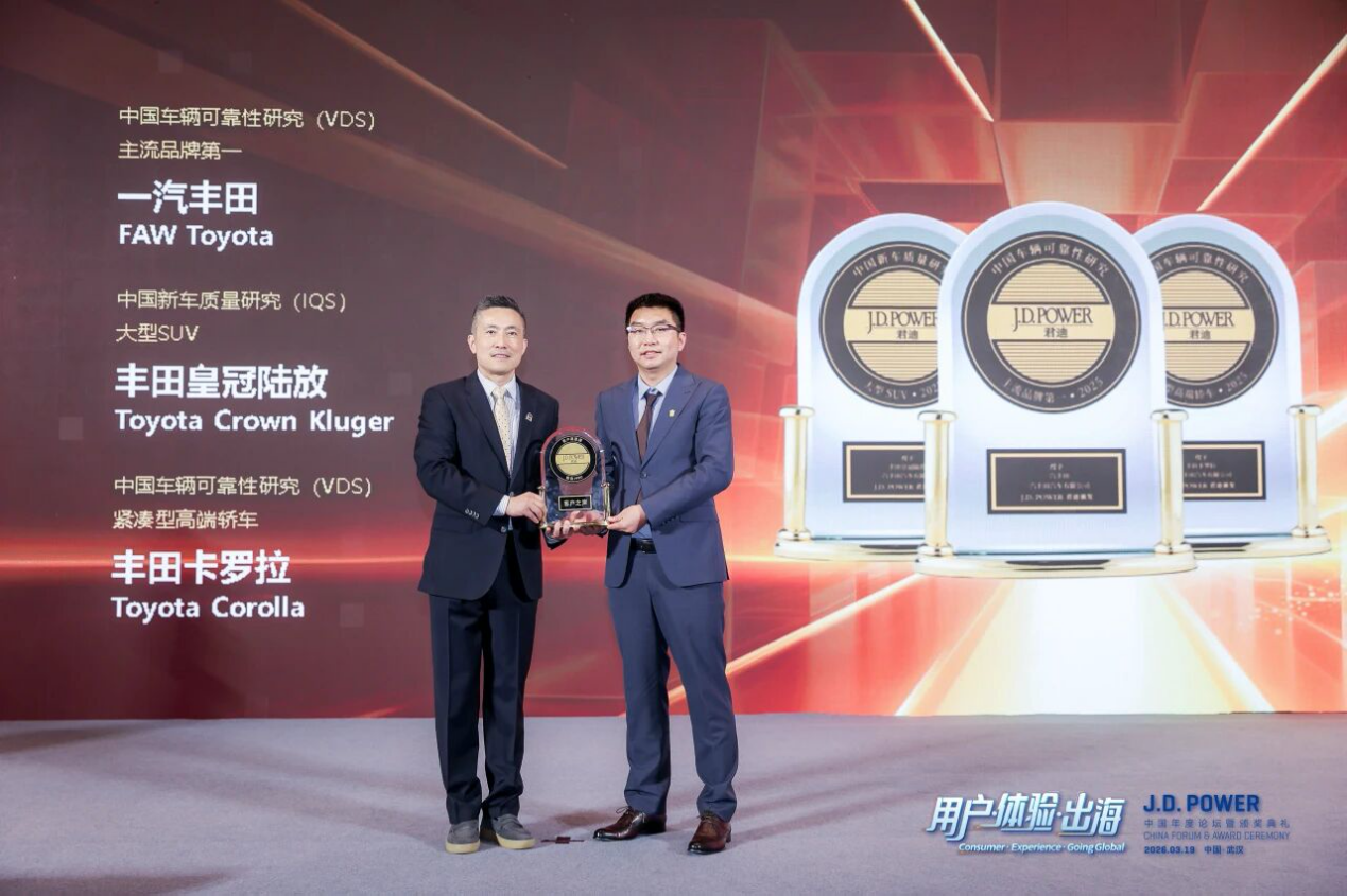 出众的产品实力,更收获了全球权威机构的高度认可。近期,一汽丰田凭借卓越产品品质与稳定用户体验,斩获2025J.D. Power 车辆可靠性+新车质量双重认证,连续四年摘得J.D. Power车辆可靠性研究(VDS)主流品牌第一名,旗下卡罗拉荣获VDS紧凑型高端轿车细分市场第一,皇冠陆放斩获J.D. Power中国新车质量研究(IQS)大型SUV细分市场第一,品牌与车型双维度登顶,用硬核实绩诠释“匠心造好车”的品牌初心,再次印证行业领先的品质实力。