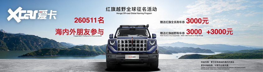 去年,共有260511位海内外朋友热情参与了红旗品牌发起的红旗越野“全球征名活动”,为了感谢众多海内外朋友对“红旗”的热爱和关注,红旗品牌将为每位参与者赠送3000元红旗全系购车券,若购买红旗越野,可额外再享3000元加赠!
